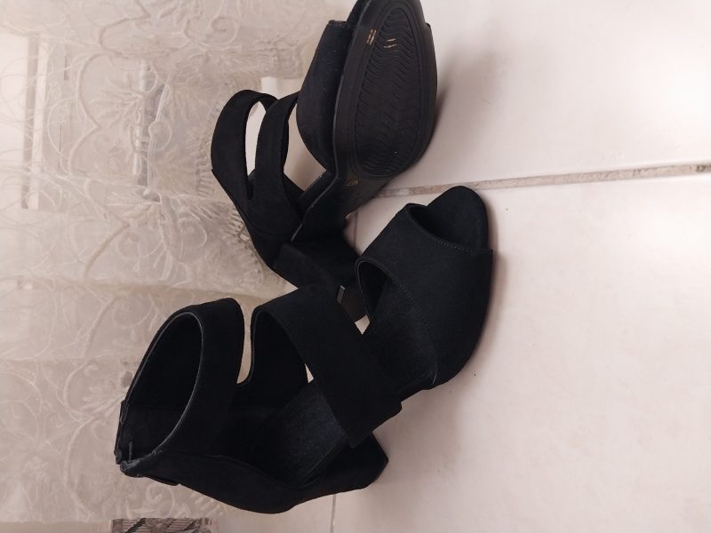 نو هستش فقد یکبار پوشیده شده تر و تمیز بدون حتی یک ذره پارگی پاشنه ۸ سانت و جنس مخمل هستش