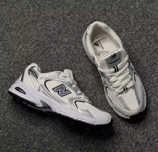 کفش کتانی اسپرت مردانه و زنانه سفید نقره ای سایز 43