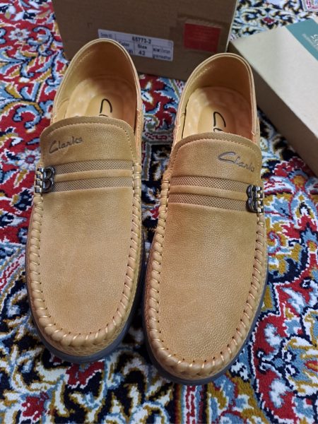 کفش کلارک اصل نو نو استفاده نشده سایز ۴۲ از نمایندگی خریدم خوشرنگ قهوه ای کم رنگ خیلی راحت و شیک جهت پیاده روی ته کفش خیلی نرم و طبی میباشد
