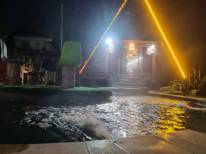 کلبه سوئیسی کاملا چوبی با استخر و جکوزی روباز و فضای دلنشین🤩