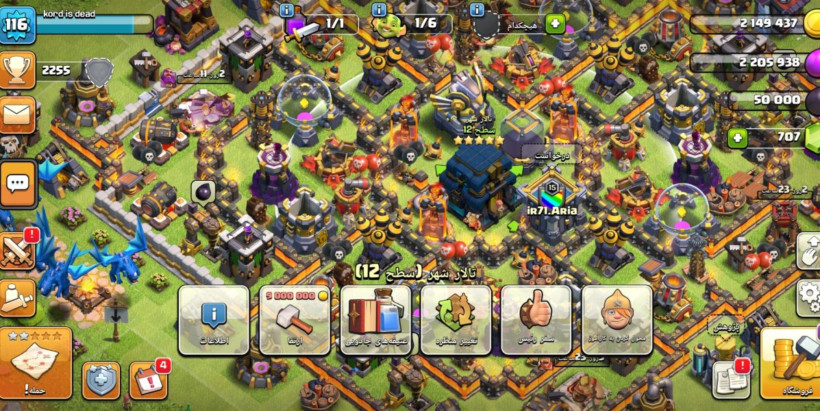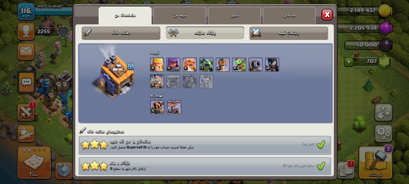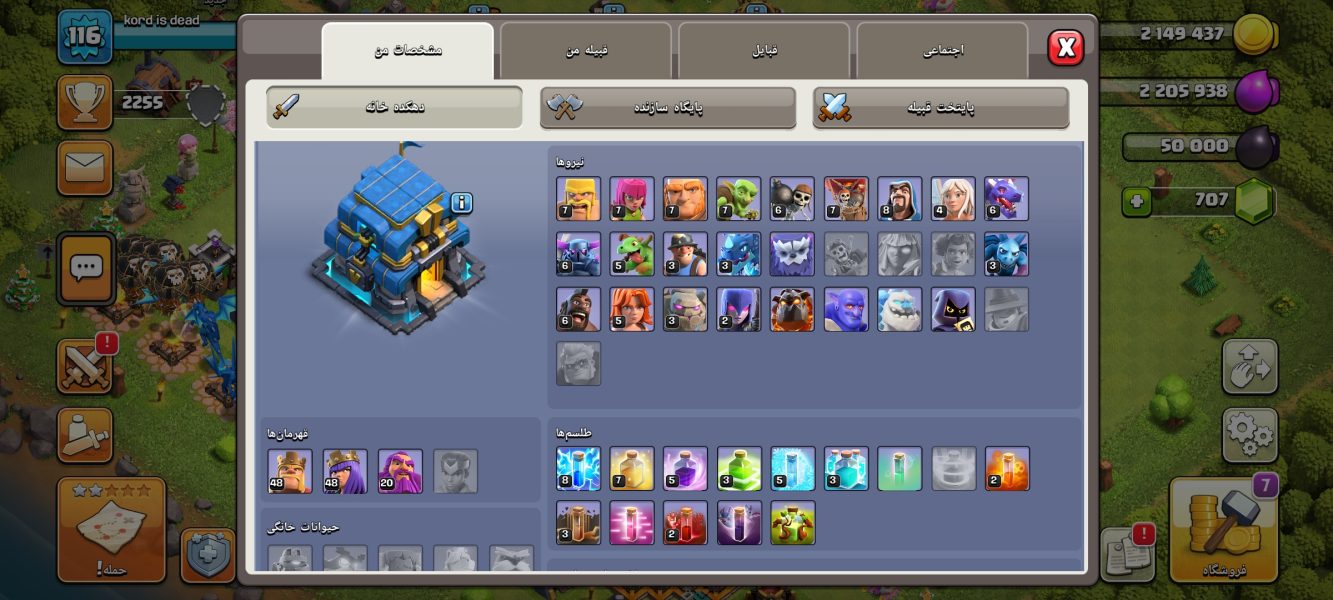 با سلام عرض دوستان گرامی اکانت کلش آف کلنز تان هال 12مکس لول 116 از اول دست خودم بوده ..