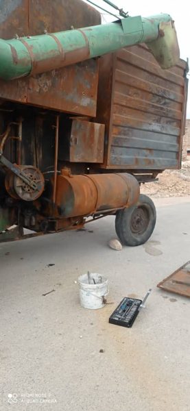 قسمت پشت کمباین در اثر اتصالی دچار حریق شده