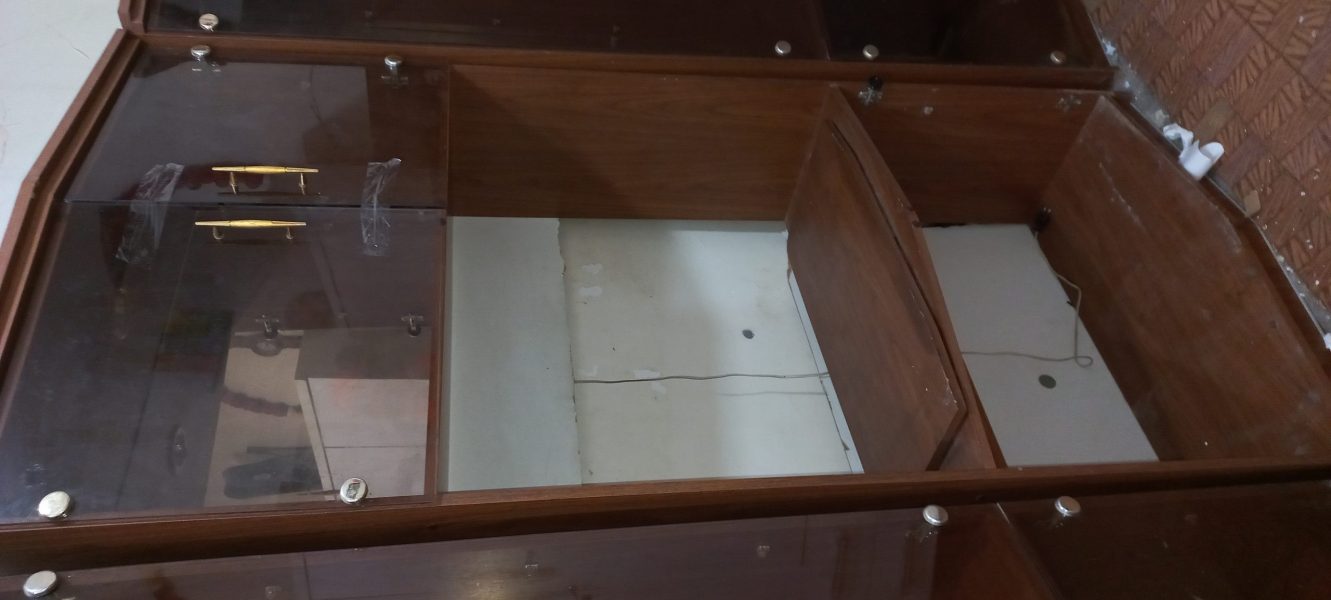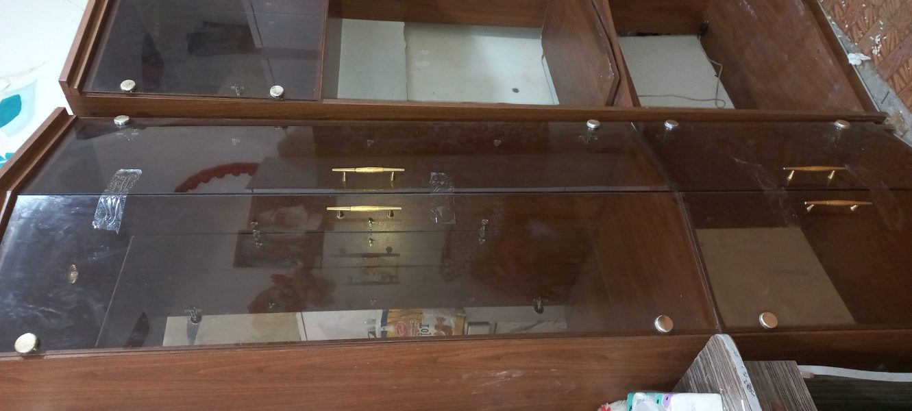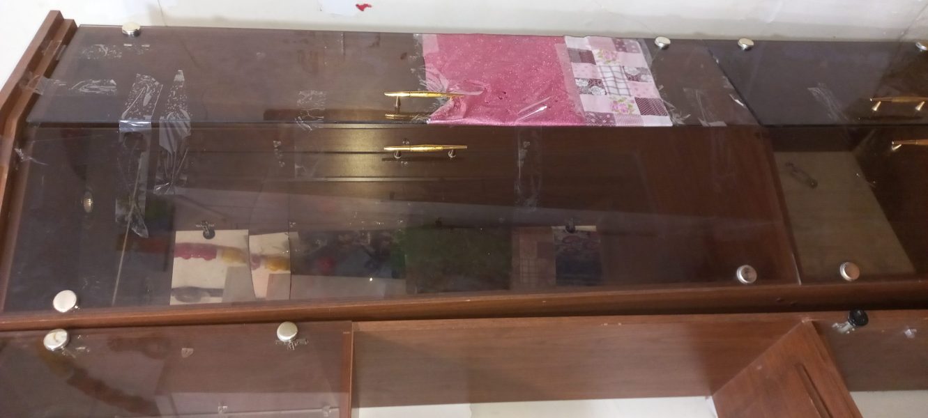همینجور ک تو عکس می بینین یکی ازبوفه هاشیشش با کاغذ چسب شده ک ازوسط شکسته ک پای معامله تخفیف داده میشه