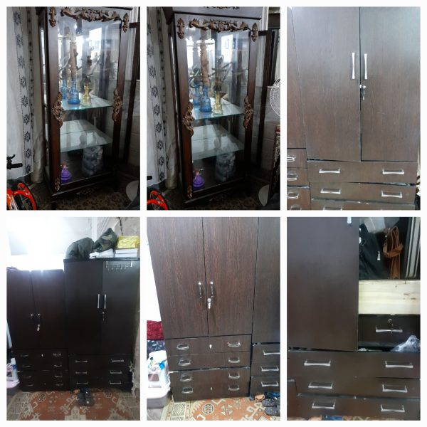 سه عدد کمد لباس ویک ویترین بفروش میرسد چوب ها سالم بدون پوسیدگی وشکستگی فقط ریل کشو ها باید تعمیر بشه که از قیمت کمد ها کم کردم. کمد ها دونه 2/500