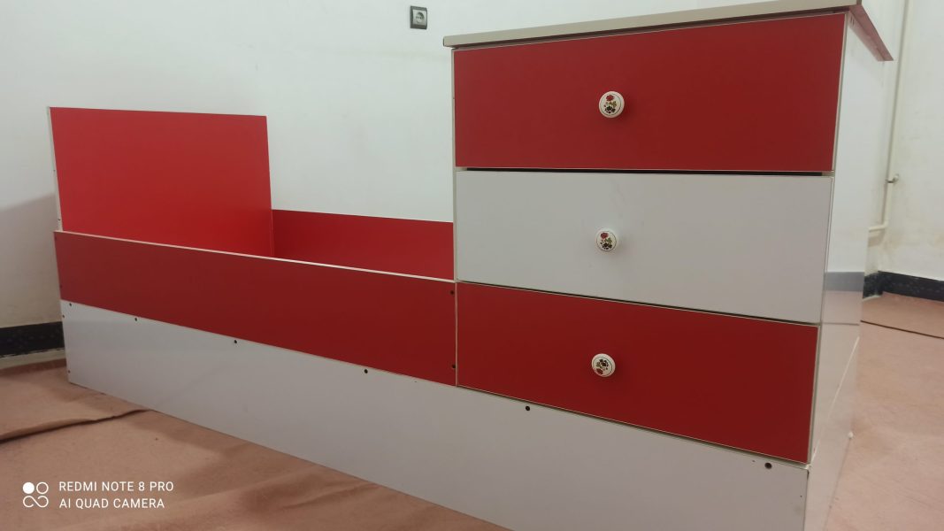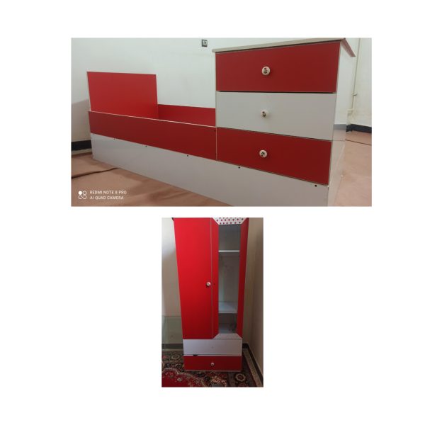 تخت خواب و کمد بچه به رنگ قرمز سفید هست که هم پسرها میشه استفاده کنم هم برای دختر ها از تخت خیلی استفاده نشده هر دو در حد نو هستن