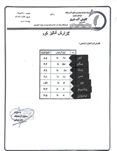 بهترین کود کامل و ریز مغزی جهت اصلاح خاک رفع شوری ، جذب ریز مغزی، رشد و گلدهی و مغزبندی . کلیه درختان میوه خصوصا پسته و زیتون با ترکیبات طبیعی که برگه آزمایشگاه در تصاویر گذاشته شده است
