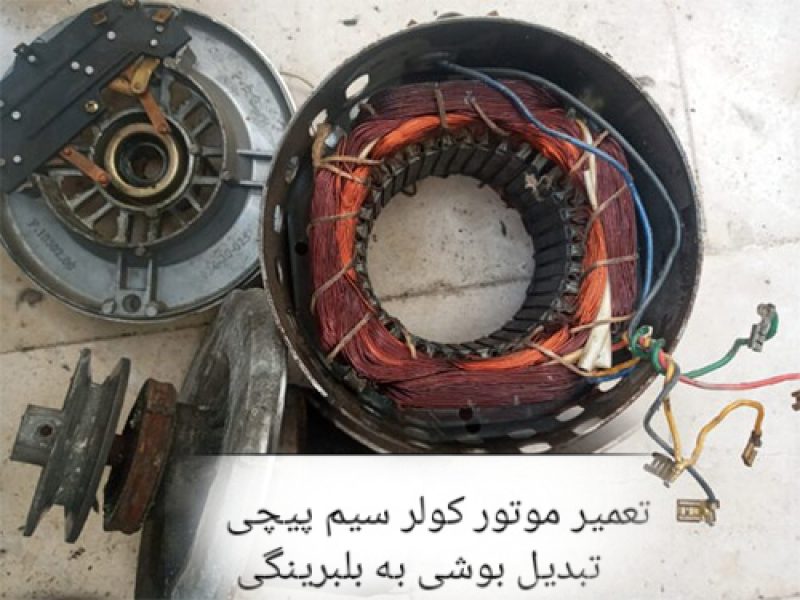 & تعمیر موتور کولر سیم پیچی و تعویض بوش بلبرینگ تبدیل بوشی به بلبرینگی تنظیم کلاج خازن و قطعات کامل&