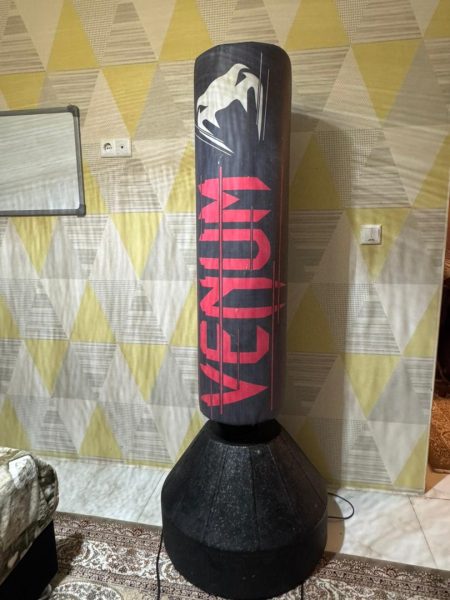 کیسه بوکس ایستاده ورزشی مناسب برای تمرین در خانه و باشگاه بسیار کار نو و تمیز هست خیلی کم کار کرد هست دختر بچه روی آن ضربه زده