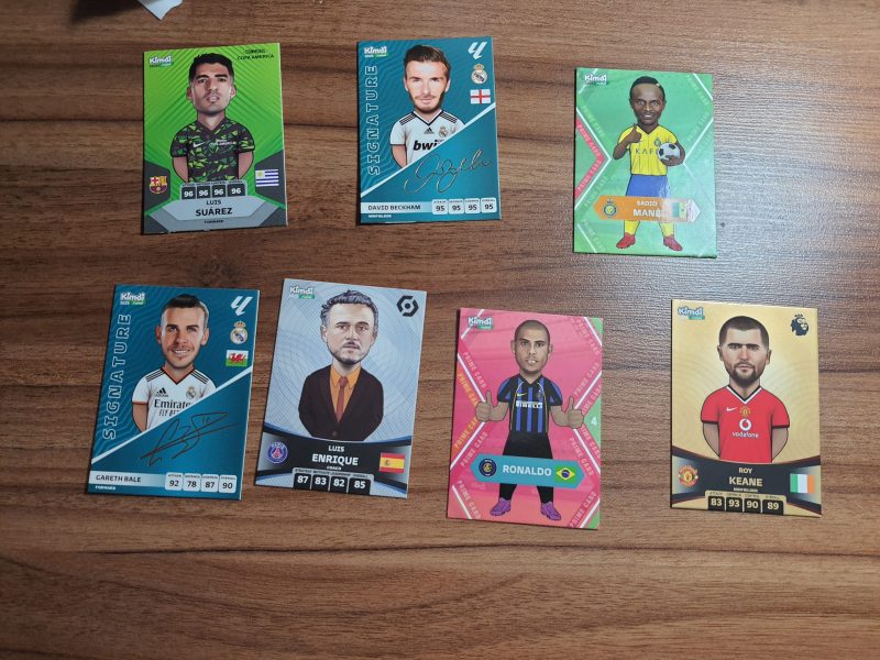 کارت های فوتبالی امضا دیوید بکام و گرت بیل ، پرایم رونالدو نازاریو و سادیو مانه ، کارت مربیگری لویس انریکه و کارت ۹۶ سوارز