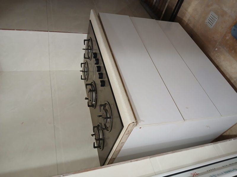 گاز پنج شعله صفحه شیشه ای همراه با کابینت سه کشو ام دی اف