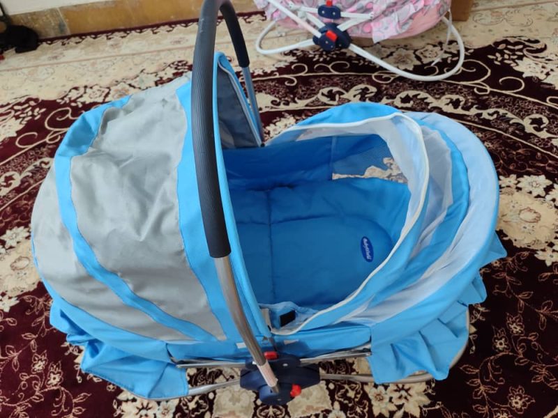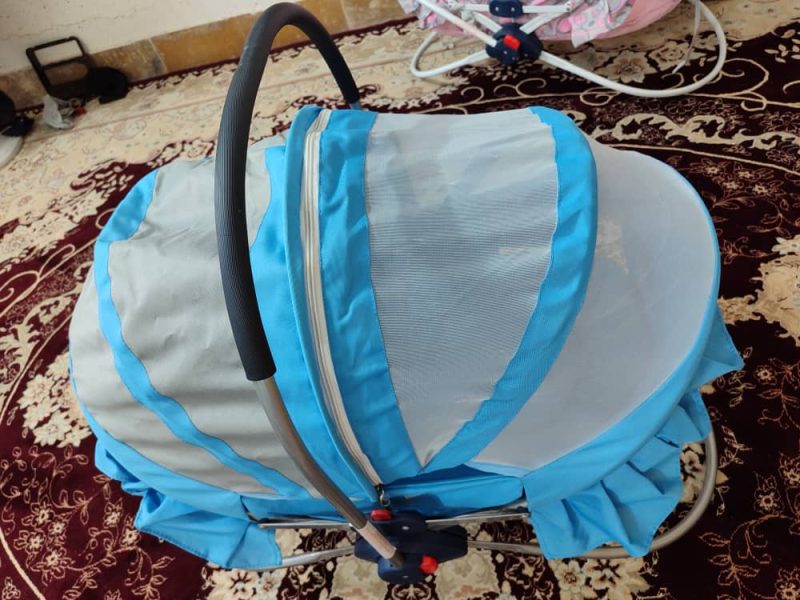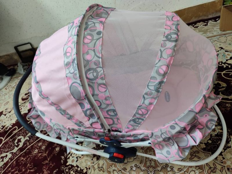 گهواره خارجی نو است دو رنگ است زیپ دار ودارای پشه بند است و قابلیت تاشو و حمل با دست رنگ صورتی و آبی است