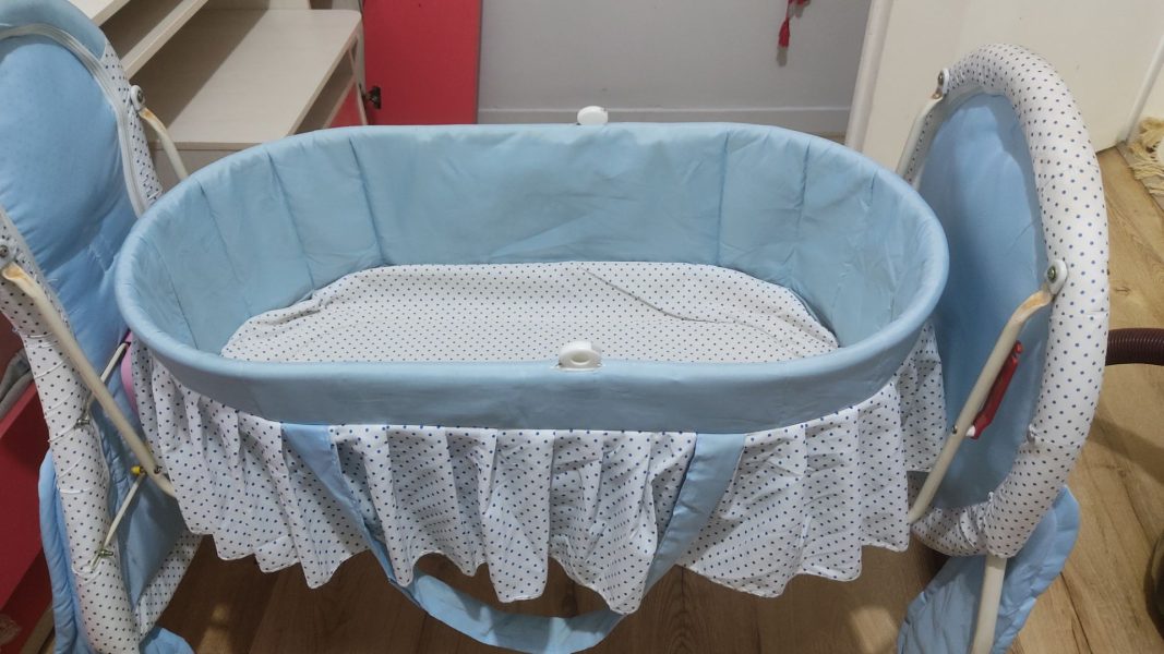 گهواره برقی در حد نو و صندلی برای کمک به پچها برای یاد گیری نشستن