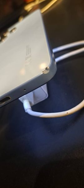 کاملا سالم. خیلی کم استفاده شده. فقط یه خوردگی کوچیک داره که عکسشو گذاشتم. شارژر فابریک