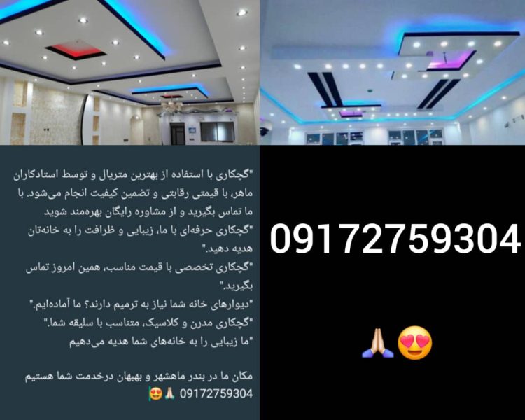 “گچکاری حرفه ای با ما، زیبا شو ظرافت را به خانه تان هدیه دهید.”