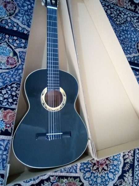 گیتار مخصوص سبک های پاپ کلاسیک فلامینکو مشکی دور طلایی کاملا سالم و نو دارای جعبه