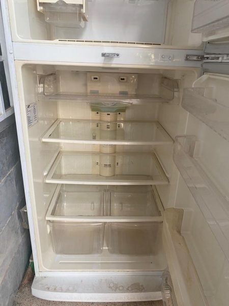 سلام یخچال و فریزر سامسونگ در حد سالم در حد نو نو نیست ولی کاملا سالمه فقط یزره پایینش زنگ زدگی داره که زیاد معلوم نیست ولی یخچال خوبیه