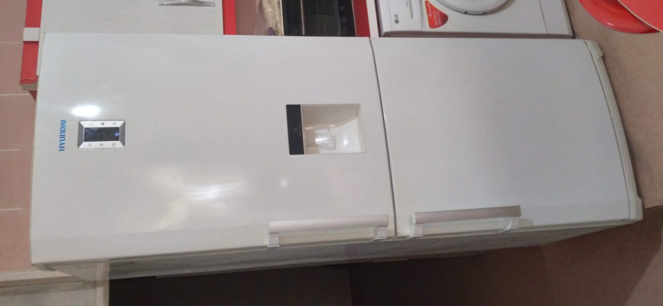 یخچال فریزر مارک Hyundai_فریزر 4کشو_یخچال 3طبقه و 2کشوپایین_مخزن اب سردکن 2لیتری_چندطبقه ی تودری یخچال وفریزرهم داره