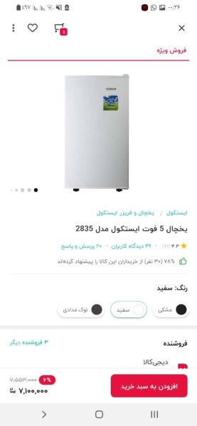 یخچال ۵ فوت نو هست هنوز از کارتن باز نشده فاکتور خریدش هنوز ۶/۵/۱۴۰۳ خریداری شده