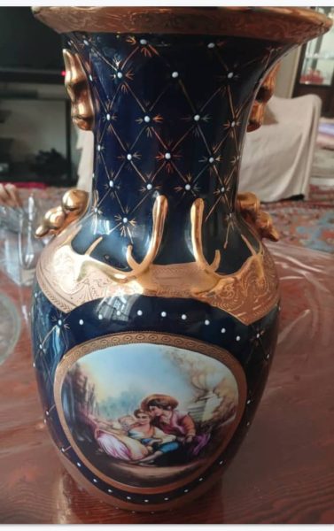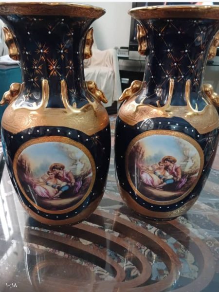 یک جفت گلدان ایتالیای طلاکوب اصل طرح لیلی و مجنون .