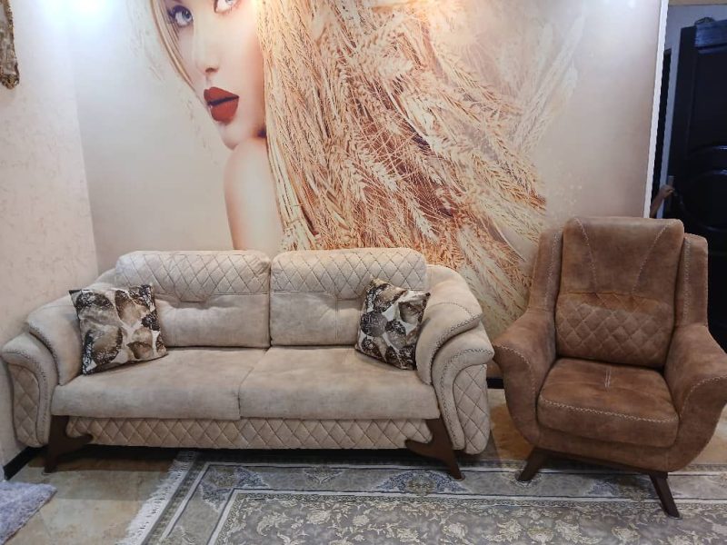 یک دست مبل هشت نفره همراه با روکش مبل و رو میزی
