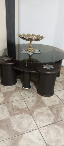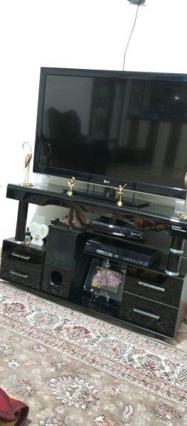 یک دست مبل 7نفره با میز جلو مبلی و عسلی هاش و میز تلویزیون شیشه ایو دو بوفه بزرگ و کوچک