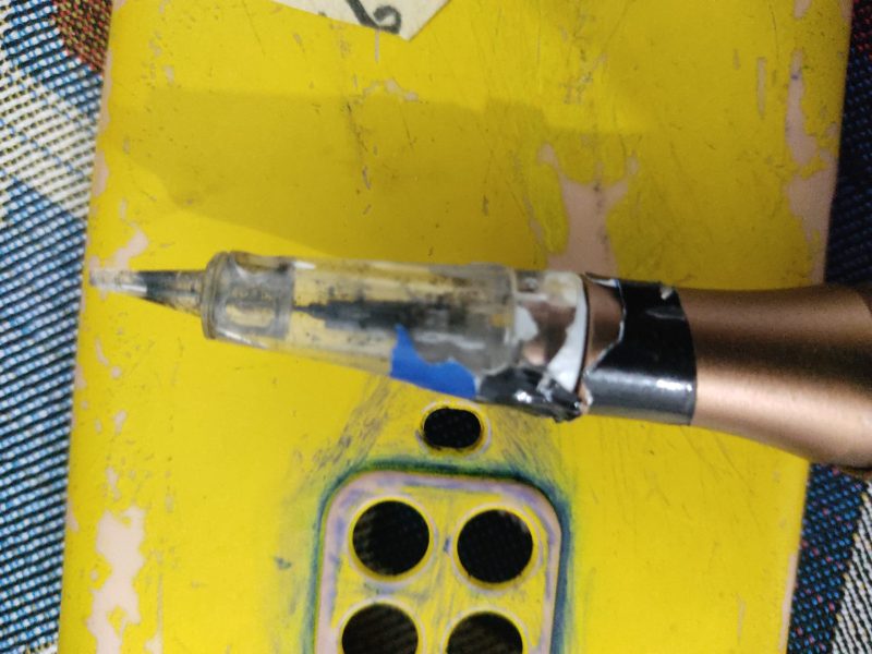 دستگاه ته تو در حد نو دو بار در کلاس آموزشی استفاده شده است که کامل سالم هست ودو عدد سوزن سالم است شارژه در موقع اسباب کشی. گم شد