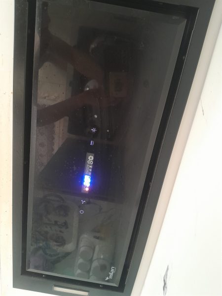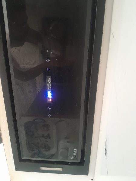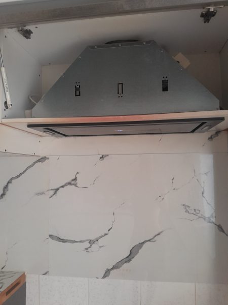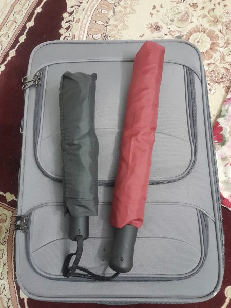 یک هود آشپزخانه در حد نو. یک چمندون متوسط طوسی رنگ در حد نو و دو عدد چتر نو