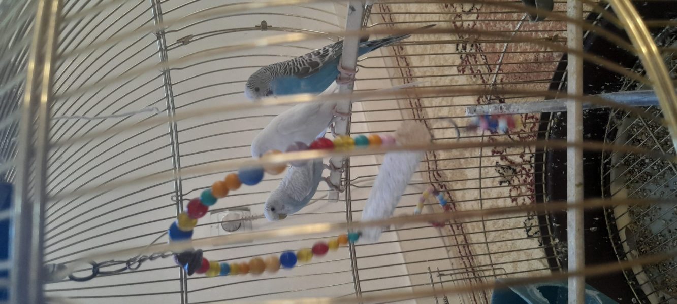 ۳مرغ عشقی وحشی بازیگوش با قفس یکی از آنها چشم شرابی است
